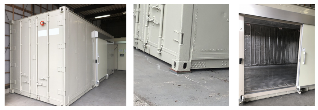 今回のコンテナのユニットは通常の海上コンテナ用から汎用機静音タイプに入れかえており、海上コンテナユニットに比べると電気代が安くなる、音が静かであるというメリットがあります