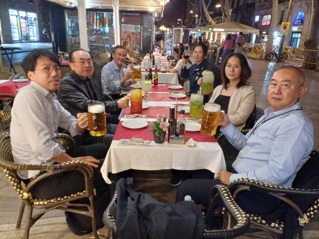エールフランス航空、羽田発朝11時45分、パリ乗り換え、1時間半内での乗り継ぎターミナルへの移動、バルセロナ到着は現地時間夜の10時40分、空港バスでホテルの近くまで行き、そこから7~8分の徒歩移動でホテルに到着、チェックインをすませ部屋に入ると翌日の0時を回っていました。シャワーを浴び就寝は2時、1時間半毎に目覚め、7時30分に食堂に行くと、社員は、既に、食事を終え、部屋に戻るところでした。皆さんの顔に笑みが溢れ、元気な社員にビックリでした。