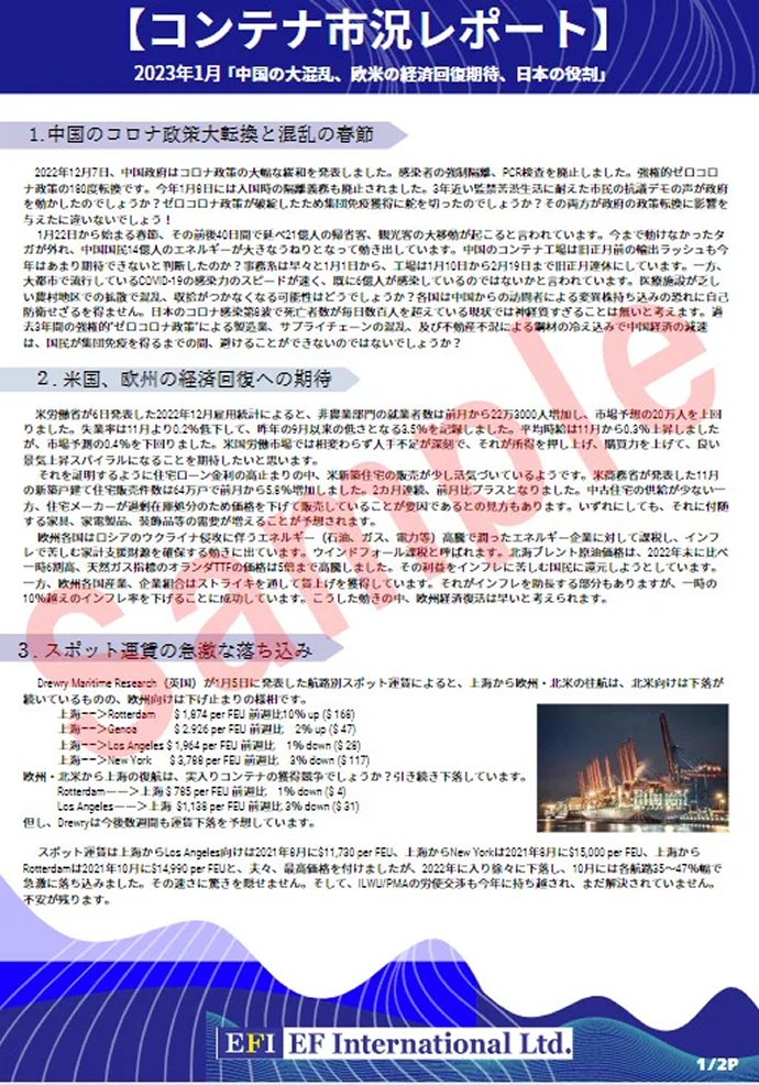 当ホームページに毎月掲載している「コンテナ市況レポート」を月ごとにPDF資料としてダウンロードしていただけます。 ご希望の方は右下のフォームよりお申し込みください。