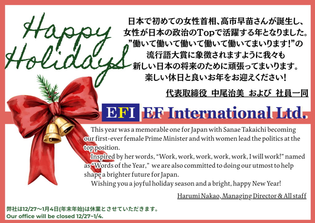 - 2025年 年末のご挨拶と年末年始休暇のお知らせ