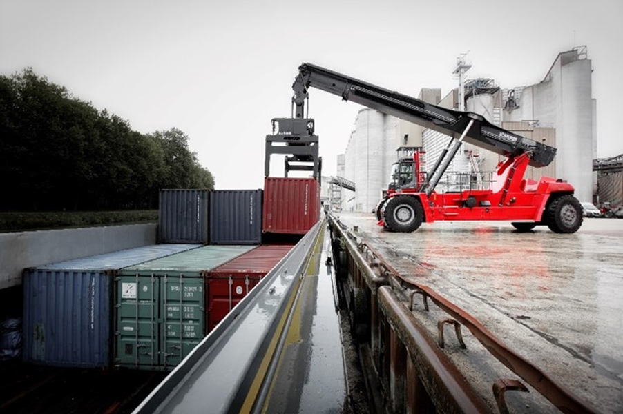 欧州域内では、港と内陸を結ぶ水路網が広範に整備されているため、バージ輸送が非常に普及しており、Kalmar社製リーチスタッカーが大活躍していますが、今般、ベトナムでもバージ荷役の一翼を担うことになりました。