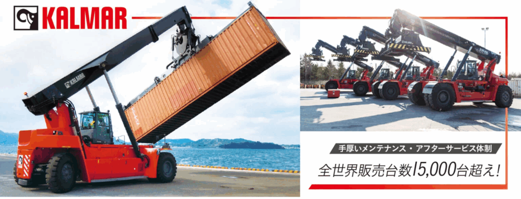 Kalmarは、世界120カ国以上で事業を展開している世界トップクラスの荷役機械メーカーであり、傘下にはスプレッダー装置を製造するBromma、トラックに架装する折り曲げ式クレーンを製造するHIAB(ヒアブ)、油圧式ハッチカバー最大手のMACGREGOR(マックグレゴー)などがあります。