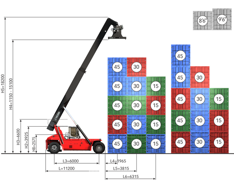 DRG450-60S5M (20’~40′ 実入りコンテナ用リーチスタッカー)