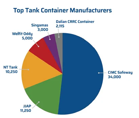2022年に製造されたタンクコンテナは67,865基で、2021年の53,285基から14,580基増加しました。上位メーカー6社のうち、JJAP TANKは2021年の5,600基から2022年の11,250基と倍増しました。