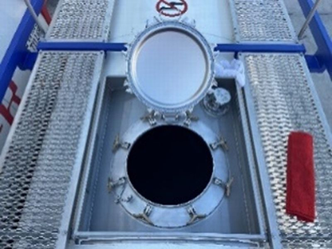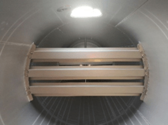 - ISOタンクコンテナはタンクローリーのように4000L毎仕切る必要がなく、一室構造になっているので貨物の積み降ろしや洗浄が簡単です。 (少量輸送や液揺れを抑えるため防波板をつけることも可能です。 ※充填率が80%以下には必要です。)