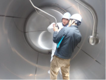 今回検査会社と契約して材料の受け入れ時から製造、完成に至るまで現場をチェックしています。検品時はバルブなど附属品から、 塗装、タンクの中まで厳しく調べます。